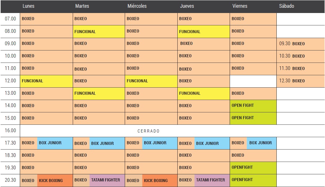 ¡Descubre las 14 horas de boxeo al día! Visita nuestro gimnasio en Valencia de lunes a viernes y sábados por la mañana para acudir a tu clase. Podrás venir a la hora y día que quieras, pero no olvides reservar tu plaza a través de nuestra web o app.